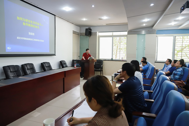 长江学者特聘教授、测绘遥感信息工程国家重点实验室张良培教授应邀作了题为“如何与研究生共同奋斗—指导教师的角色”的报告。张良培教授从“培养学生要慷慨”、“指导学生要前沿”、“培养学生要全面”、“管理学生要有效” 四个方面分享了他培养研究的做法和体会。他示范的做法,中肯的建议,幽默的话语给导师们以深刻的感染和启迪。张教授与现场的导师们还进行了深入的互动交流,场面十分热烈。