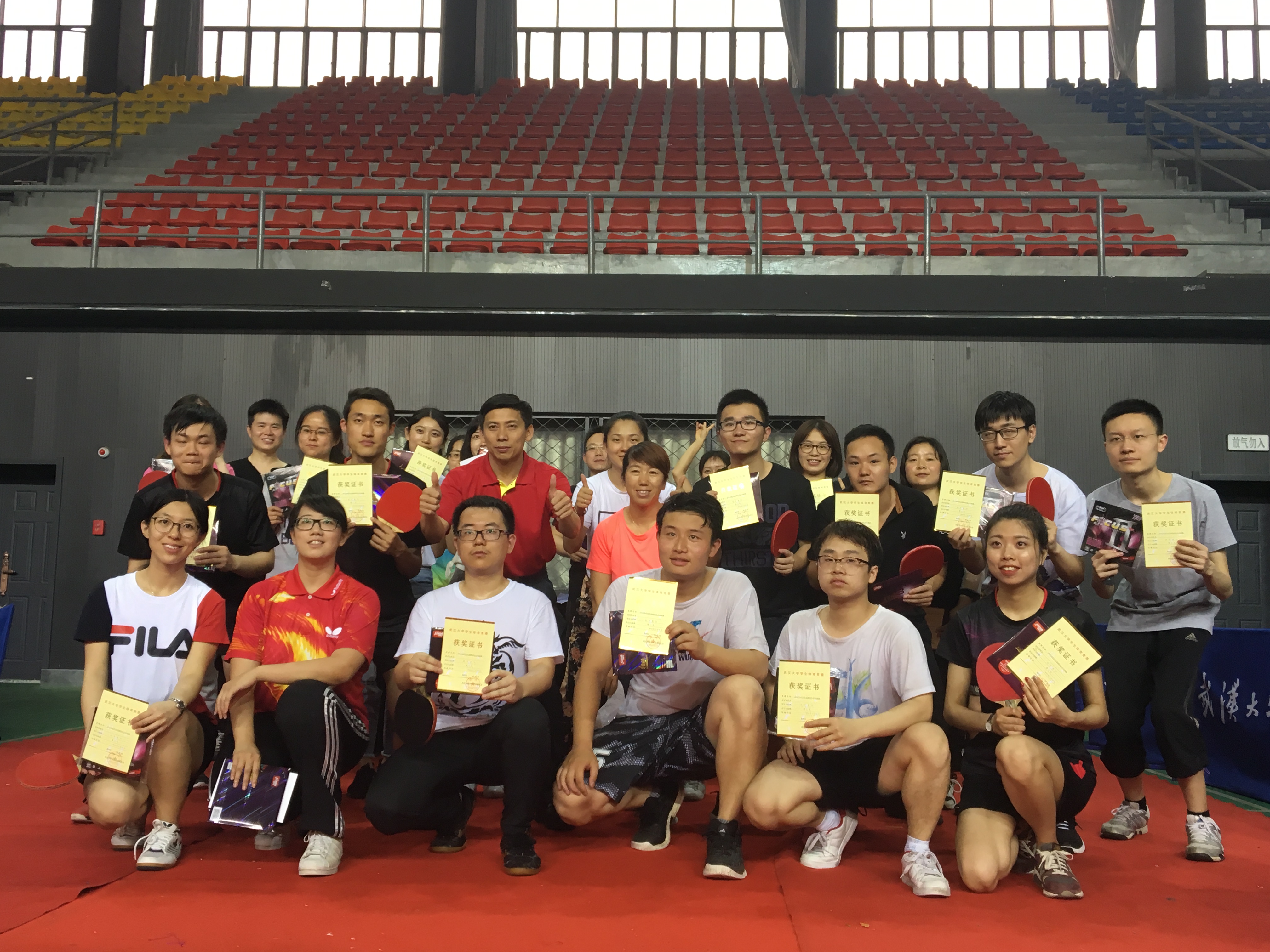 为发展国球运动,丰富校园生活,增强学生体质, 5月19 日到 5月 20日武汉大学体育部在工学部体育馆举办了“2018年武汉大学研究生乒乓球比赛”。比赛项目分为混合团体和单项比赛,混合团体和单项比赛中有男子单打、女子单打、男子双打、女子双打以及混合双打,每场比赛采用5局3胜制。团体比赛分两个阶段进行,第一阶段若干组进行单循环赛,第二阶段采用淘汰及附加赛,决出前八名;单打比赛采用单淘汰及附加赛决出前八名。测绘学院混合团体由陈鑫华、尹双双、李姝雯、钱隆、刘磊、赵强、胡家欢和徐鸿章八名同学组成;男单选手有钱隆和徐鸿章,女单选手有陈鑫华和尹双双,男双分别由刘磊和赵强、胡家欢和李宇翔组成的两支队伍。