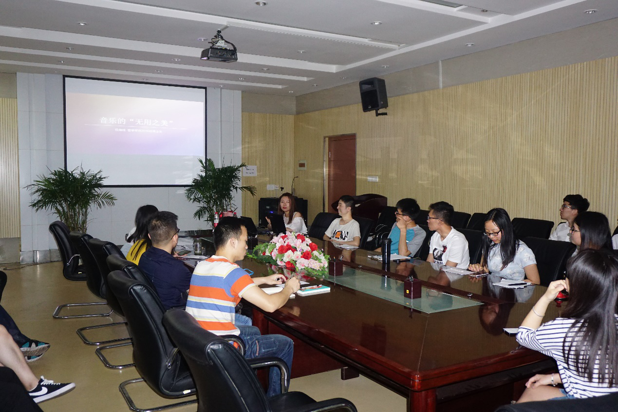 任珈瑄同学为同学们带来了主题为“音乐的无用之美”的报告。首先,任珈瑄同学介绍了“美”的基本概念,分别从西方和东方的几个时间阶段阐述美的不同形式,美在和谐、美在上帝、美在自由、美在存在、美在礼乐、美在自然、美在意境。除了要了解什么是美,我们还需要培养审美的能力,发现生活和艺术中的美感,美感是一种对美的感知,理解美的内在情感,最重要的是作为审美经验。当人置身于美之中时,人会忘乎所以,忘记一切,人与美同在,因此,美感必须作为理解美的经验。